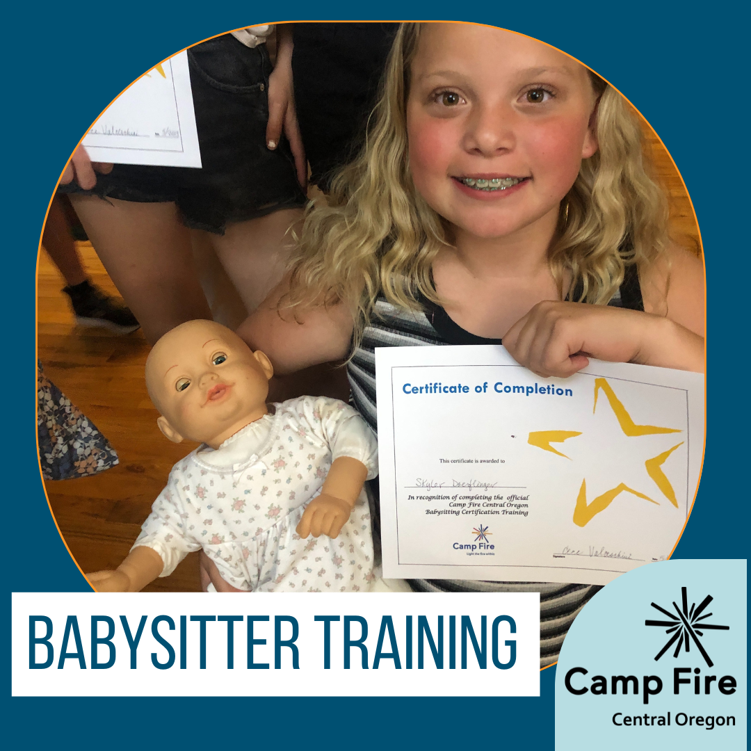Camp Fire Central Oregon is offering babysitting training for youth ages 12-17, an opportunity to learn applicable skills including: basic child care, first aid and safety measures, engaging games and activities to play with young children, as well as some food preparation skills. Participants also receive training on job ethics and how to present themselves professionally. Upon successful completion of the course, each participant heads home with: