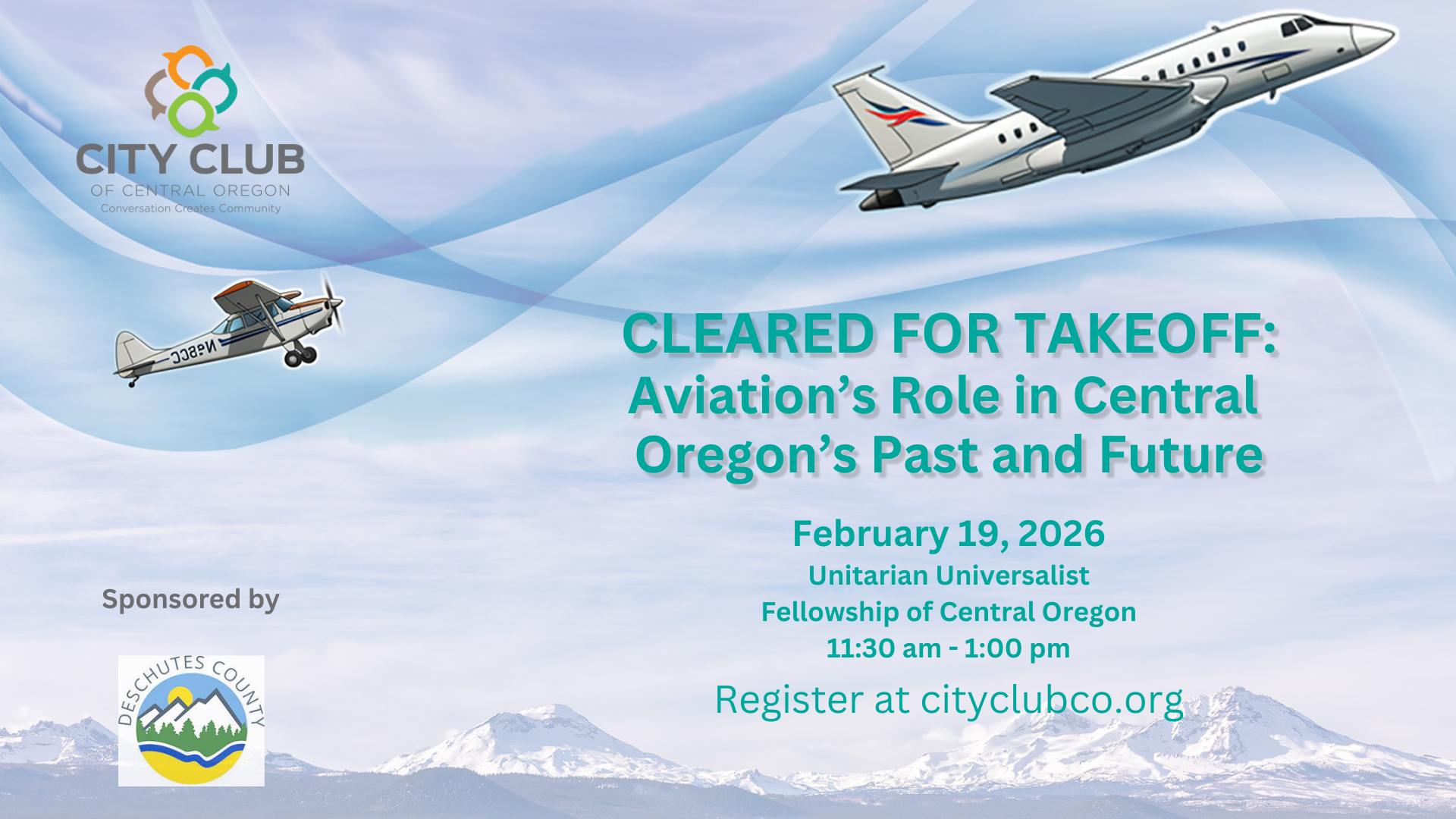 Central Oregon is soaring to new heights! Aviation has long been a driving force behind our region’s growth, and now it’s entering an exciting new chapter. Join City Club of Central Oregon for a lively conversation about aviation’s impact on our past and its role in shaping the future. We’ll spotlight the major expansion underway at Redmond Airport, an ambitious project designed to meet skyrocketing demand and strengthen our connection to the world, as well as Central Oregon’s role in shaping the aviation industry from building private aircraft to training pilots. Discover what this means for local businesses, travelers, and the entire Central Oregon economy.