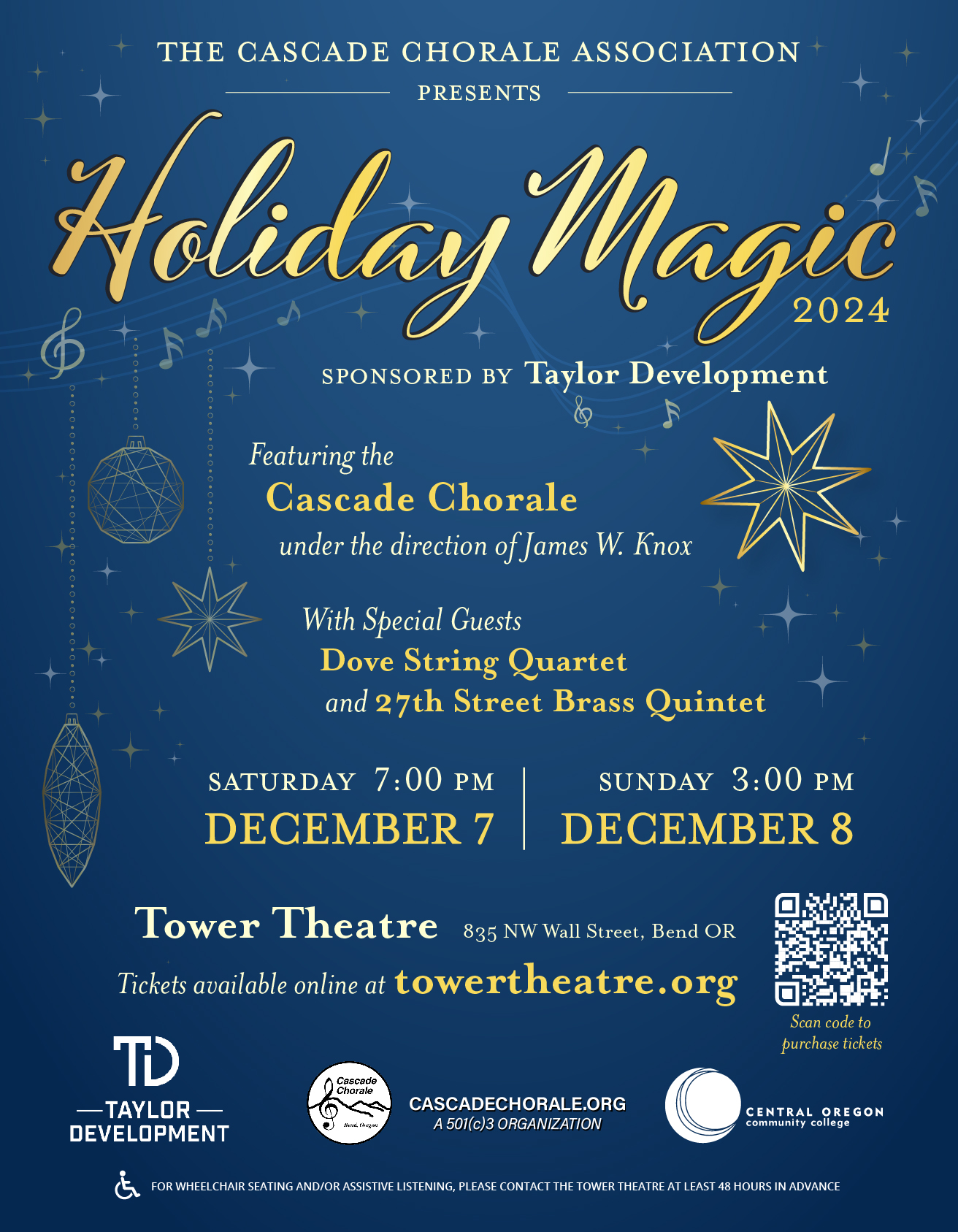 For Holiday Magic 2024, the Cascade Chorale is beyond thrilled to announce a sensational event that promises to enchant audiences with a gorgeous blend of cherished classics and fresh new works. Immerse yourself in ear candy from composers like Eric Whitacre and our own James Knox to pieces that riff on classic greats.