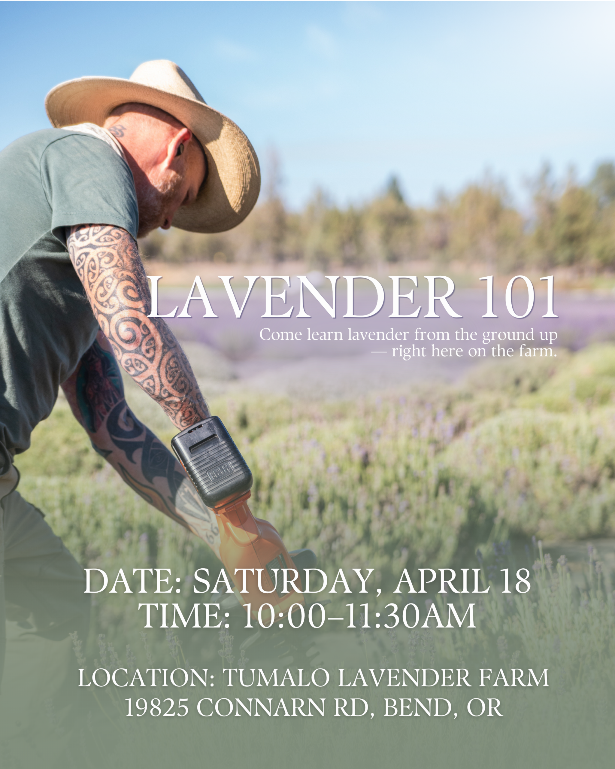 This hands-on class is a great starting point for anyone curious about growing lavender, or for those who already love it and want to know more. Summer, one of our co-owners, will walk you through the farm, share how we grow, harvest, and distill, and answer the questions we hear most often about choosing the right variety, planting it well, and keeping it healthy in Central Oregon’s climate.