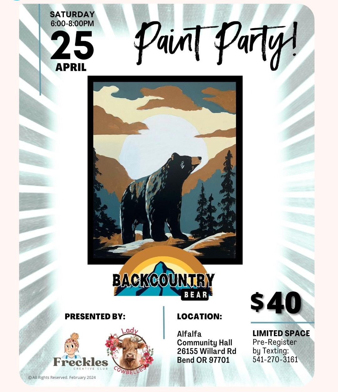 Bring a friend and have fun painting this bear! All equipment supplied with an instructor! Lots of fun and laughter!