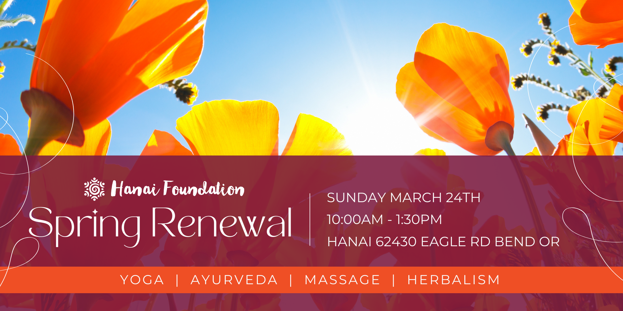 The Spring Equinox marks the transition to longer days, more light, and new growth! To support and celebrate this auspicious season, please join the Hanai Foundation in collaboration with Angie Norwood of Continuum Yoga and Tanya Hughes of Amulette Studios for a fun and informative community workshop that blends principles of yoga, massage, ayurveda, and herbalism. We’ll stoke the inner fire with yoga, learn massage to help digestion, and share a traditional ayurvedic meal of kitchari.