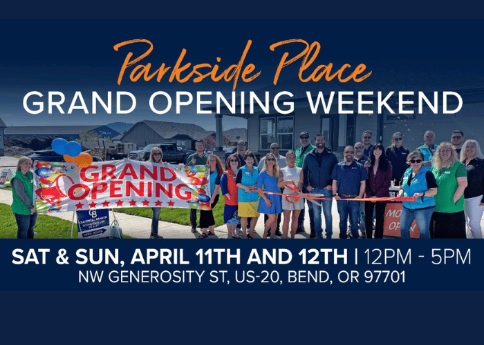 Parkside Place 61052 NE Give Pl. Bend OR 97702Join us all weekend long, Saturday, April 11th and Sunday, April 12th from 12 PM to 5 PM, for the grand opening of our brand-new model home in Parkside Place! Kick things off on Saturday from 12 PM to 2 PM with complimentary drinks from Travelin’ Tom’s of Bend, our treat. Plus, enjoy swag, sweet …