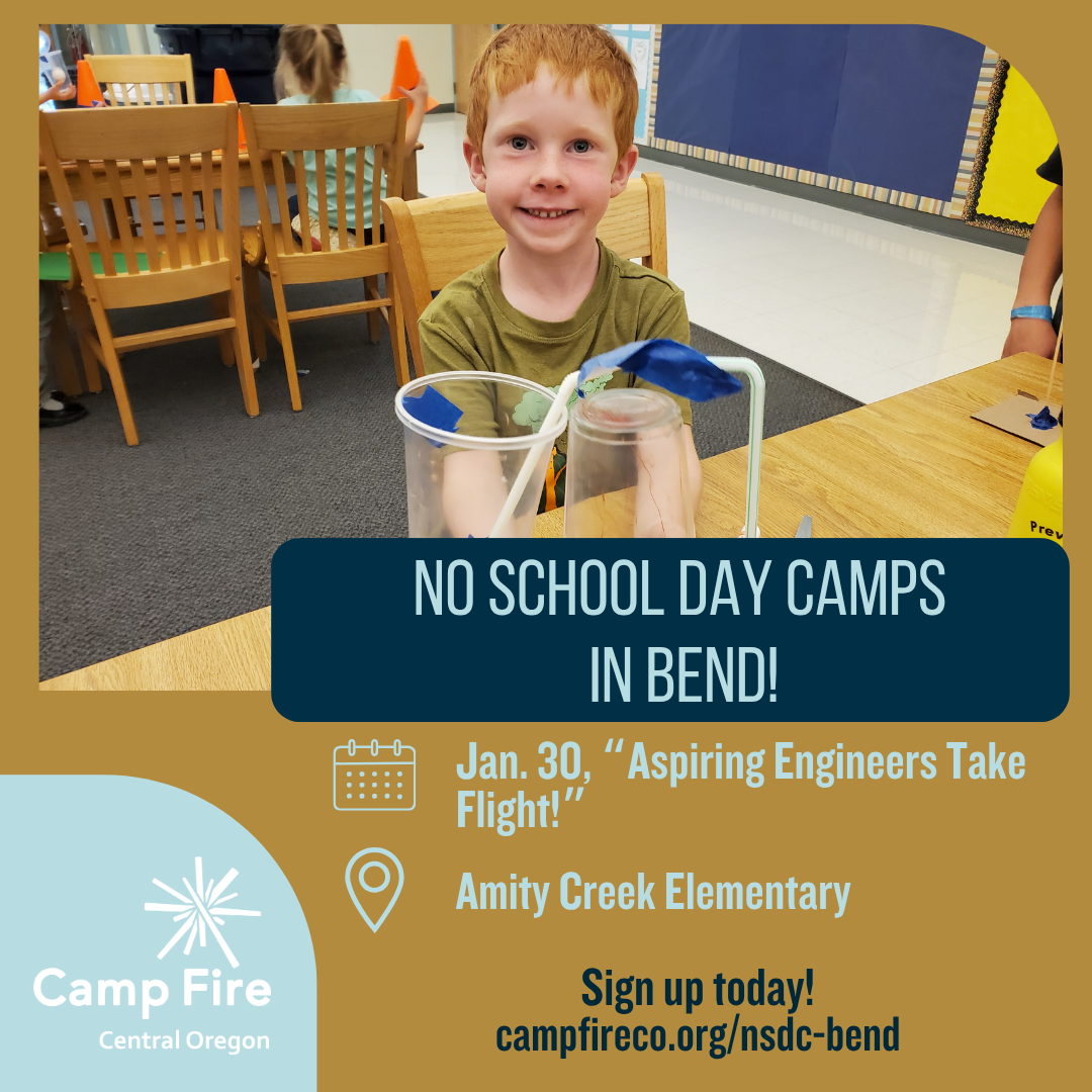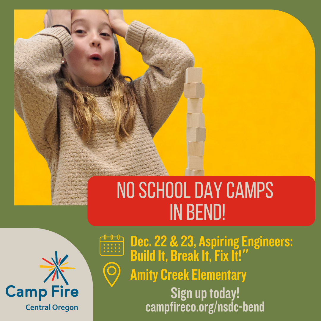 Amity Creek Magnet at Thompson Elementary 437 NW Wall St, Bend, OROffered at Amity Creek Elementary in Bend, No School Day Camps turn that “day off” into a day of creativity and fun! From kindergarten through 5th grade, we have you covered on those days Bend/La Pine Schools are out. Our professional staff members fill every No School Day Camp with games and activities to help …